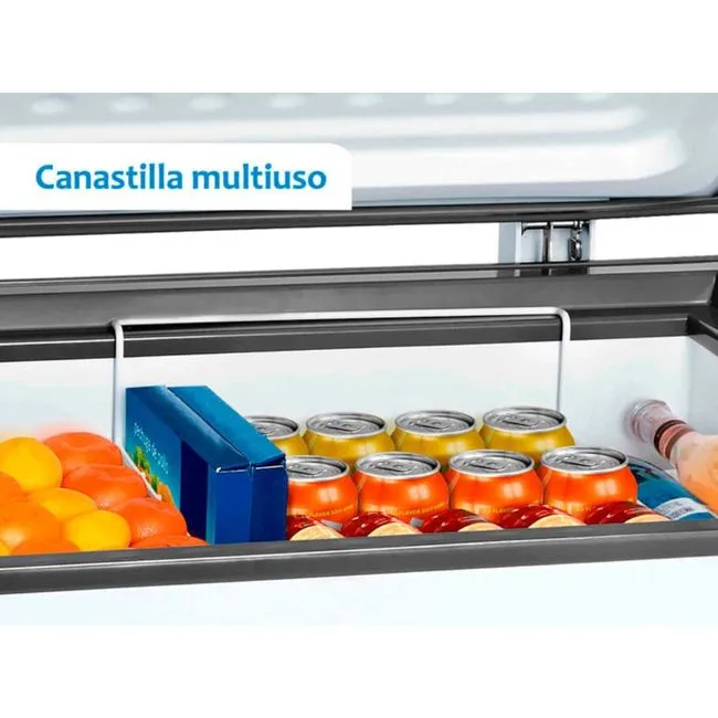 La congeladora tiene un diseño moderno y elegante, con un acabado en color blanco. Su interior está dividido en un solo compartimiento.